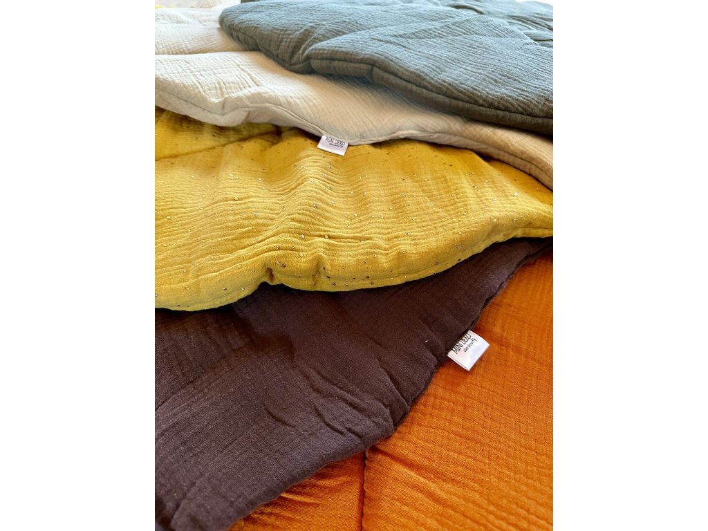 Dopřejte svému děťátku jedinečný prostor pro hraní a odpočinek s naší pečlivě ručně šitou hrací podložkou ve tvaru listu, vyrobenou ze 100% bavlny (mušelínu) nejvyšší kvality a certifikovanou podle Oeko-Tex Standard 100 třídy 1, která zaručuje nezávadnost pro děti do 3 let.